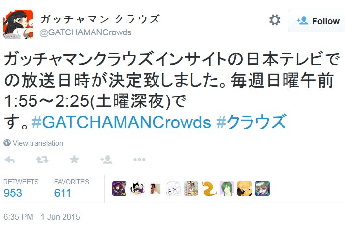 2015년 7월 신작 '갓챠맨 크라우즈 인사이트' 가장 빠른 방송국