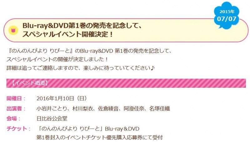 '논논비요리 리피트' 블루레이 & DVD 제 1권 발매 기념 스페셜 이벤트 소식