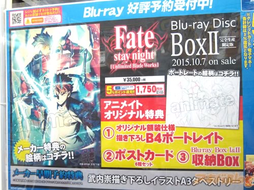 2015년 8월 10일에 조기 예약이 마감된 '페이트 스테이 나이트 UBW' 블루레이