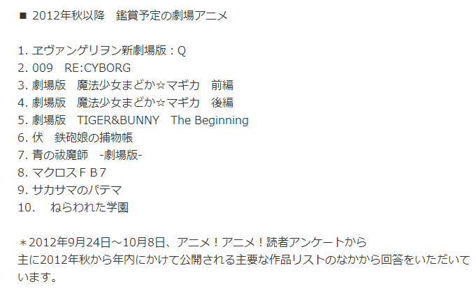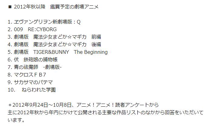 일본의 애니메이션 뉴스 사이트 [ 아니메 아니메 ] 에서 "2012년도 하반기에 개봉되는 애니메이션 영화 중에서 어