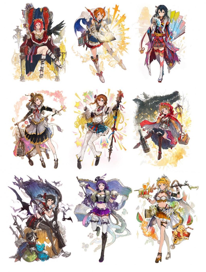 그림입니다. 러브라이브 x 그랑블루 판타지 컨셉의 2차 창작 일러스트를 그린 모