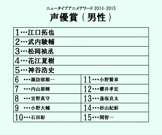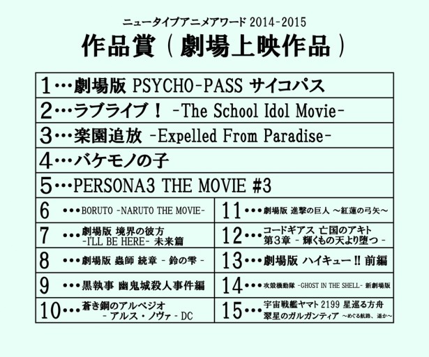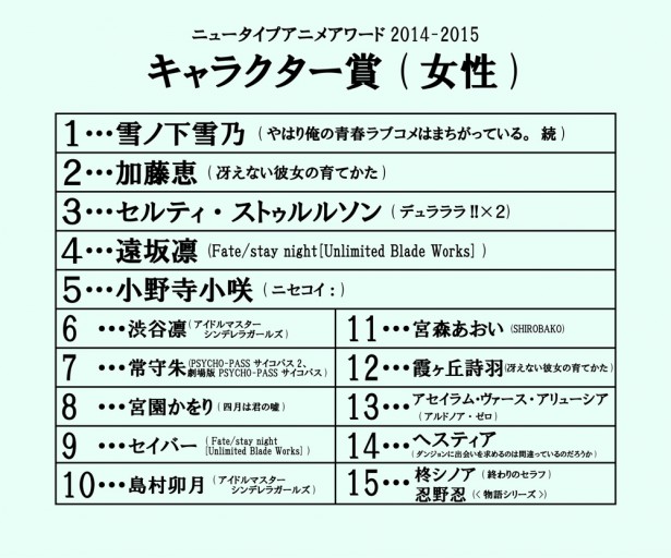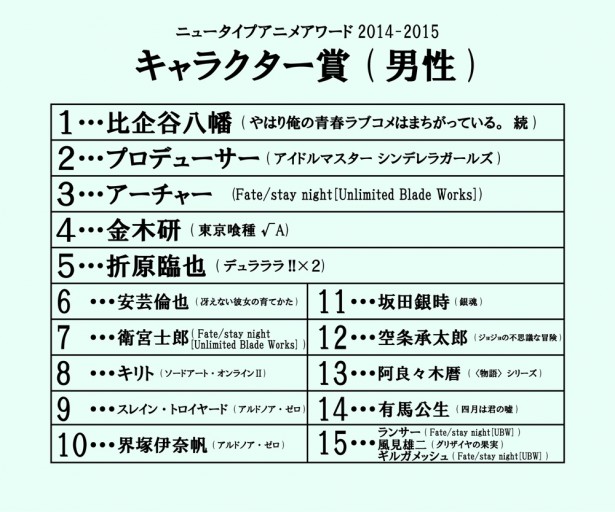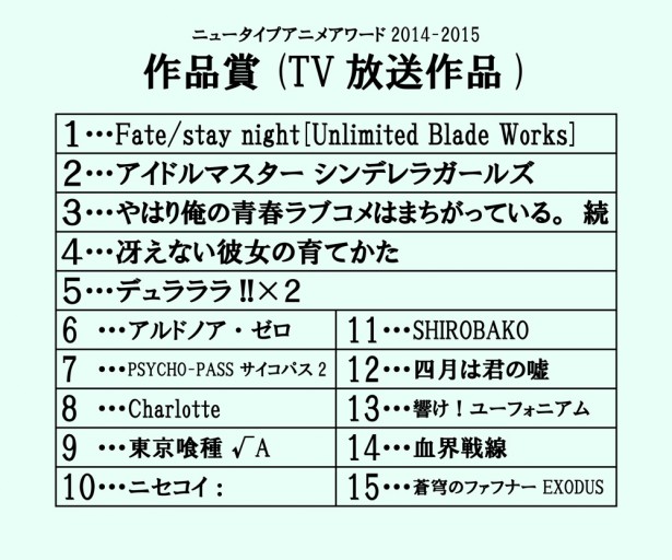 '뉴타입 애니메이션 어워드 2014-2015' 투표 결과 중간 발표