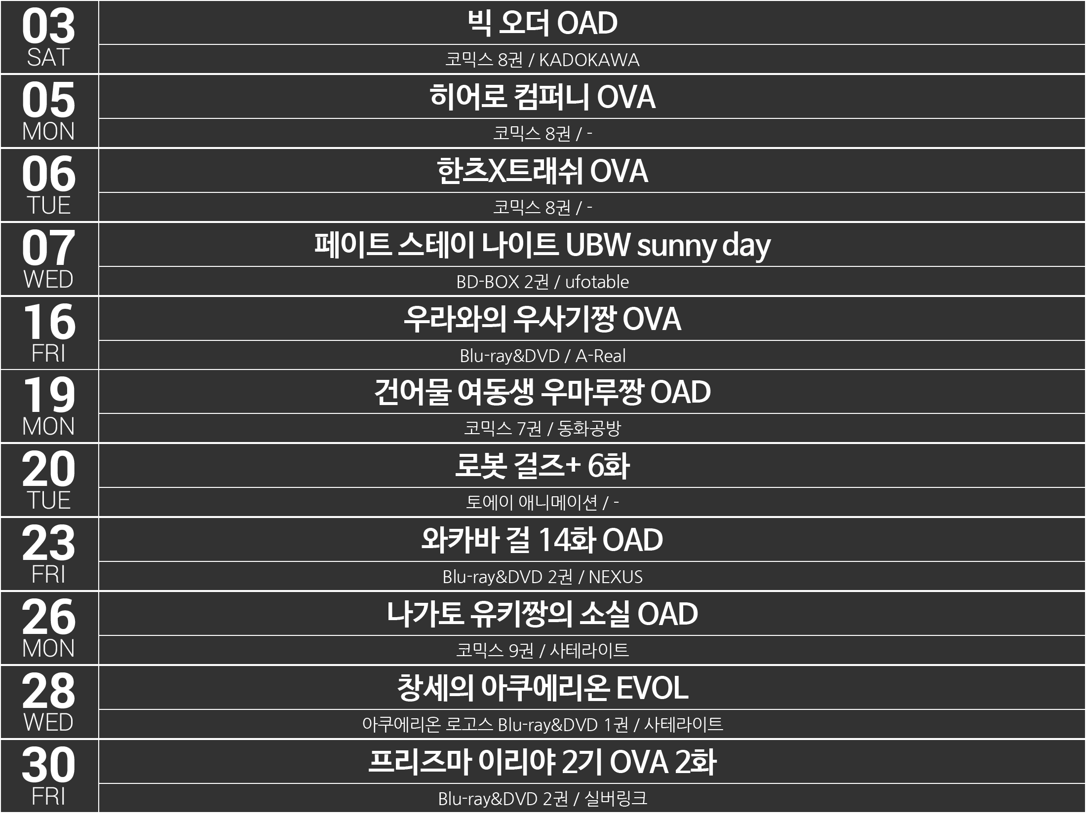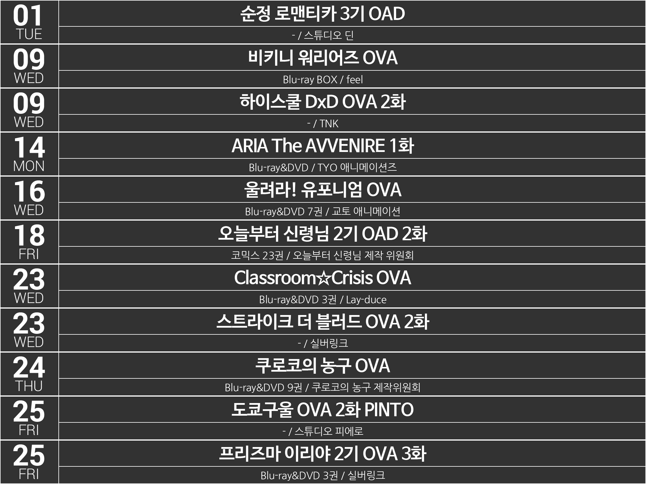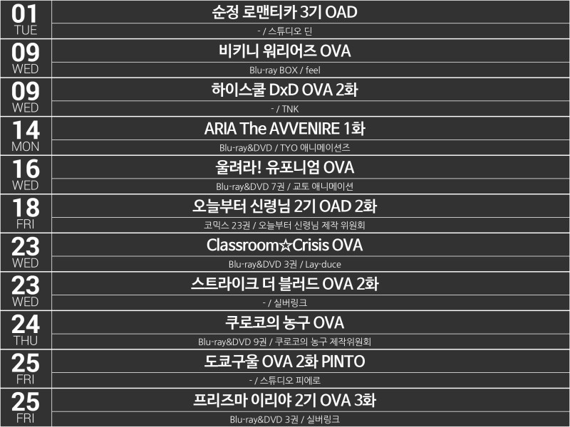2015년 4분기[10-12월] 애니메이션 OVA(OAD) 목록 - 제작