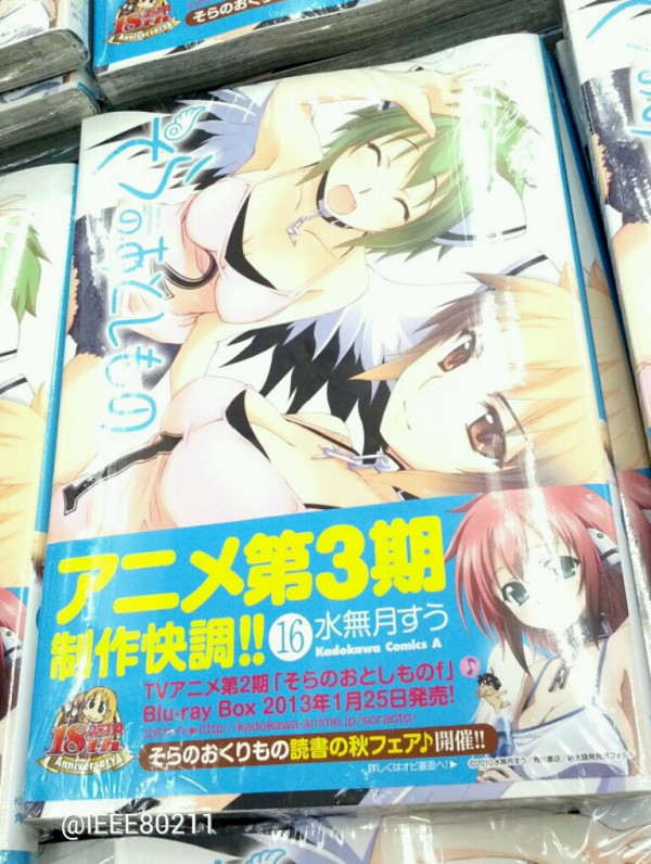 10월 26일에 정식 발매될 예정인 '하늘의 유실물' 코믹스 단행본 제 16권의 띠지에, 애니