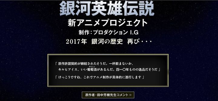 2017년부터 새로운 애니메이션 프로젝트가 전개되는 '은하영웅전설'과 관련해서,