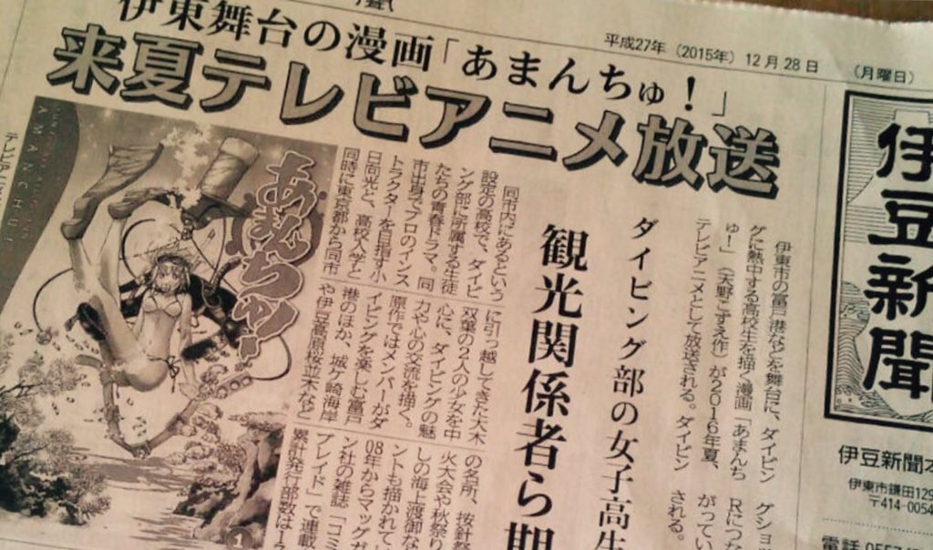2016년 7월 신작 '아만츄!' 관련 기사가 실린 신문 사진