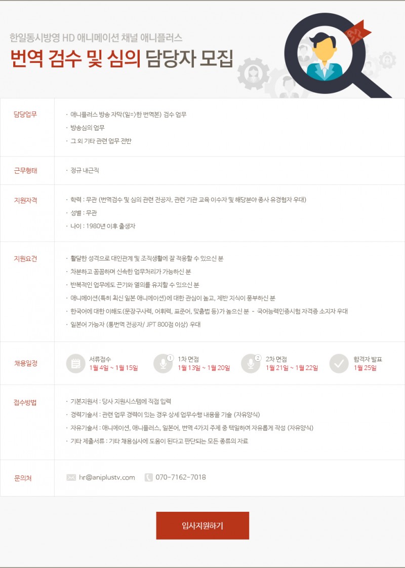 타카후지 카코 [애니플러스] 번역 검수 및 심의 담당자 모집 [애니] 작성일시 : 2016. 01. 06 (14:33) 조회 : 3,147 / 댓글 : 2 출처(링크) : http://bbs2.ruliweb.daum.net/gaia/do/ruliweb/family/1360/read?articleId=1952794&bbsId=G003&itemId=15&pageIndex=1 1추천 글쓰기스크랩 신고