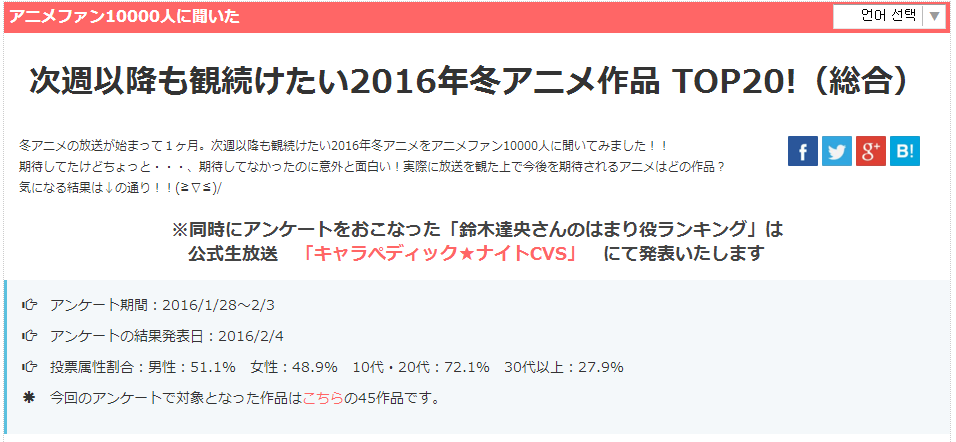 2016 년 겨울 애니메이션을 애니메이션 팬 10000 명에게 물어 보았습니다! !