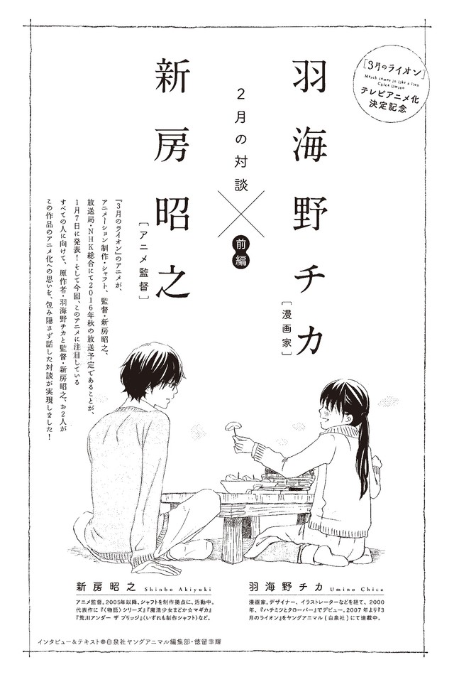 '3월의 라이온'과 관련해서, 원작 만화의 작가인 '우미노 치카'씨와 애니메이션