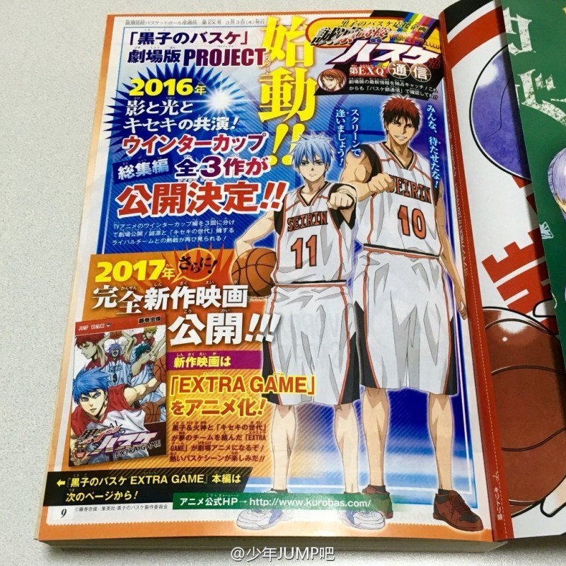 Teixeira [쿠로코의 농구] 극장판 개봉 확정 [애니] 작성일시 : 2016. 03. 02 (11:34) 조회 : 2,477 / 댓글 : 0 2016년 윈터컵 총집편 총3편에 걸쳐 공개2017년 엑스트라 게임 극장판 공개 출처(링크) : http://bbs2.ruliweb.daum.net/gaia/do/ruliweb/default/news/521/read?articleId=2000535&bbsId=G003&itemGroupId=28&pageIndex=1 0추천 글쓰기스크랩 신고