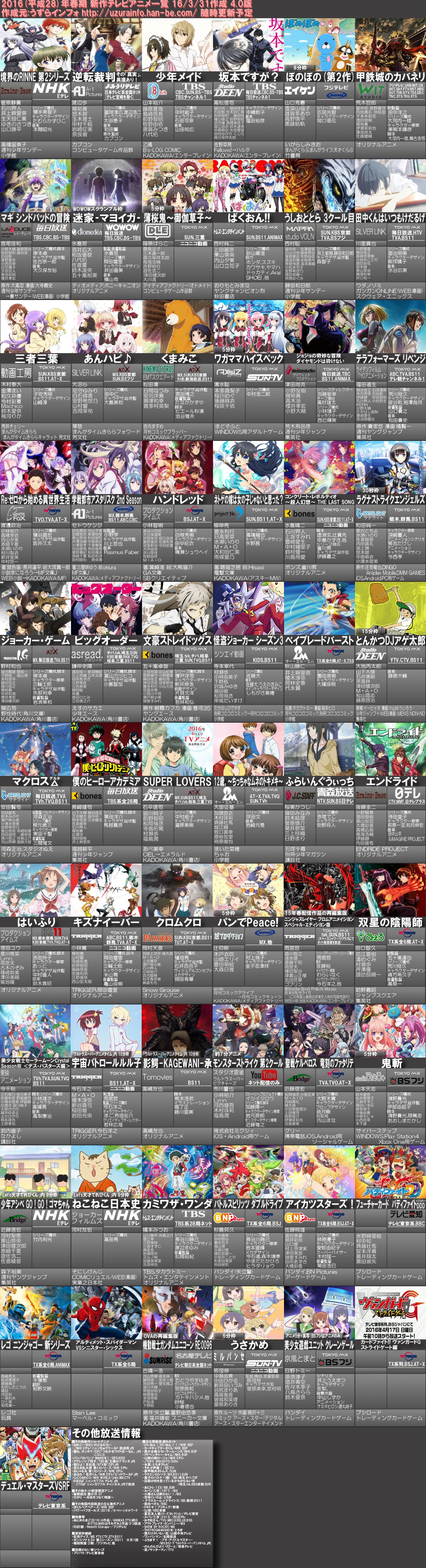 2016년 4월 신작 애니메이션 비공식 예정목록 업데이트