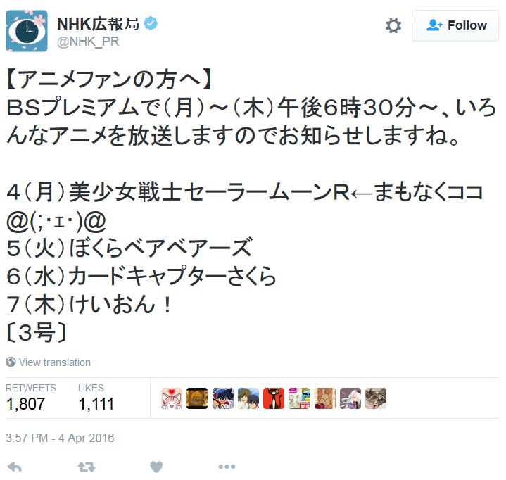 (출처: https://twitter.com/NHK_PR/status/716882446134980608)