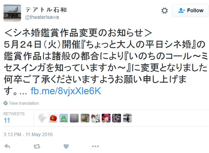 (출처: https://twitter.com/theaterisawa/status/730279624811352064)