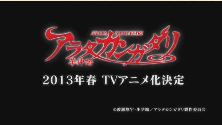 2013년 4월 신작 애니메이션으로 방영될 예정인 '아라타 칸가타리'의 홍보 영상이 나온 모양