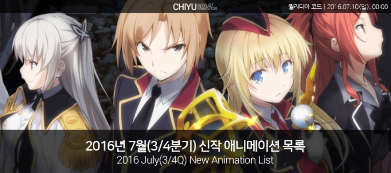 2016년 7월(3/4분기) 신작 애니메이션 목록 - 제작(06.19)