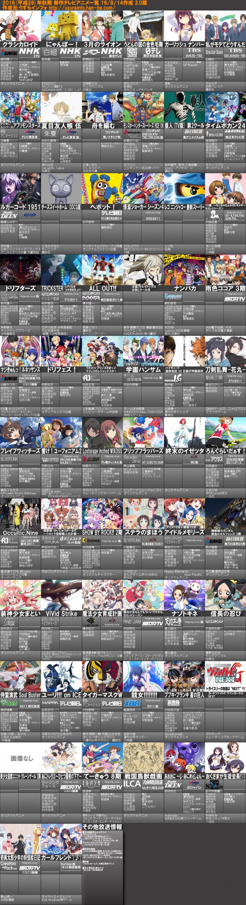 * 2016년 10월 (가을) 신작 애니메이션 예정 목록 (비공식)