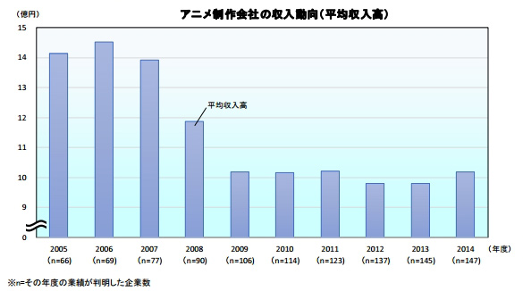 일본의 애니메이션 제작회사 153군데의 경영 실태를 조사한 결과가 발표되었
