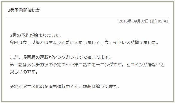 사파이어 라이트노벨 '이세계 식당'의 애니메이션화 기획이 진행중이랍니다. [애니] 작성일시 : 2016. 09. 08 (01:50) 조회 : 3,422 / 댓글 : 0 (출처: 소설가가 되자) 웹 소설 투고 사이트 '소설가가 되자'에서 연재되어 상업 서적으로 출판도 된 '이세계 식당'(異世界食堂)의 애니메이션화 기획이 진행중이라고 하더 군요. 어디서 나온 이야기인가 했더니만 '소설가가 되자'에서 작가분이 직 접 밝힌 사실이라고 합니다. 과연 언제 어떤 식으로 애니메이션화가 될지, 지켜보도록 하겠습니다. 출처(링크) : http://alonestar.egloos.com/7261438 2추천 글쓰기스크랩 신고