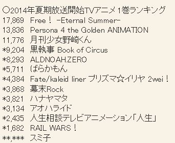 ※ 2014년 여름(7월) 시즌 방송 개시 TV 애니메이션 블루레이 & DVD 제 1권 판매량 랭킹