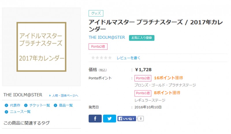 아이돌마스터 플래티넘 스타즈 2017 캘린더 발매예정