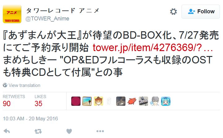 (출처: https://twitter.com/TOWER_Anime/status/733463059109273600)