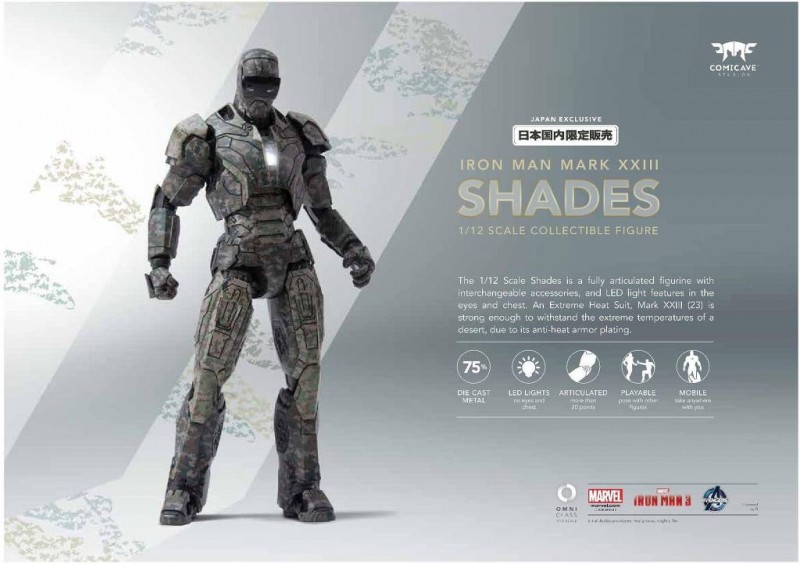 dark greed [Comicave Studios]슈퍼알로이 1/12 아이언맨 마크 23 쉐이즈 [피규어] 작성일시 : 2016. 02. 02 (23:21) 조회 : 2,794 / 댓글 : 0 [Comicave Studios]슈퍼알로이 1/12 아이언맨 마크 23 쉐이즈 2016년 2월 7일 겨울 원더페스티벌 한정판매 (3월부터 일반판매예정)가격:18200엔(세금 별도)약 15.3cm(6인치,1/12스케일)무게:약 150g(합금량 75%)제조사:Coimcave Studios ※이 외에도 행사 당일 마크 25 스트라이커, 마크 33 실버 센츄리온, 마크43, 1/12 헐크버스터, 1/4 헐크버스터를 전시한다고 합니다.※ 기존에 나온 마크40 샷건의 색놀이버전입니다. 출처(링크) : http://bbs2.ruliweb.daum.net/gaia/do/ruliweb/family/1359/read?bbsId=G003&articleId=1975725&itemId=17 0추천 글쓰기스크랩 신고
