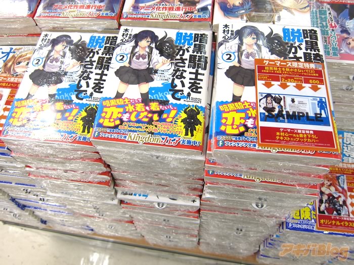 라이트노벨 '암흑기사를 벗기지 말아줘' 제 2권이 발매된 모습