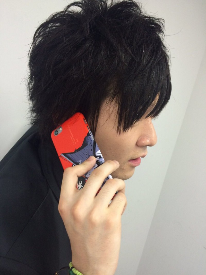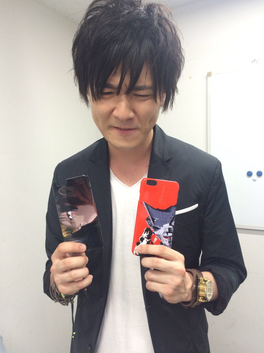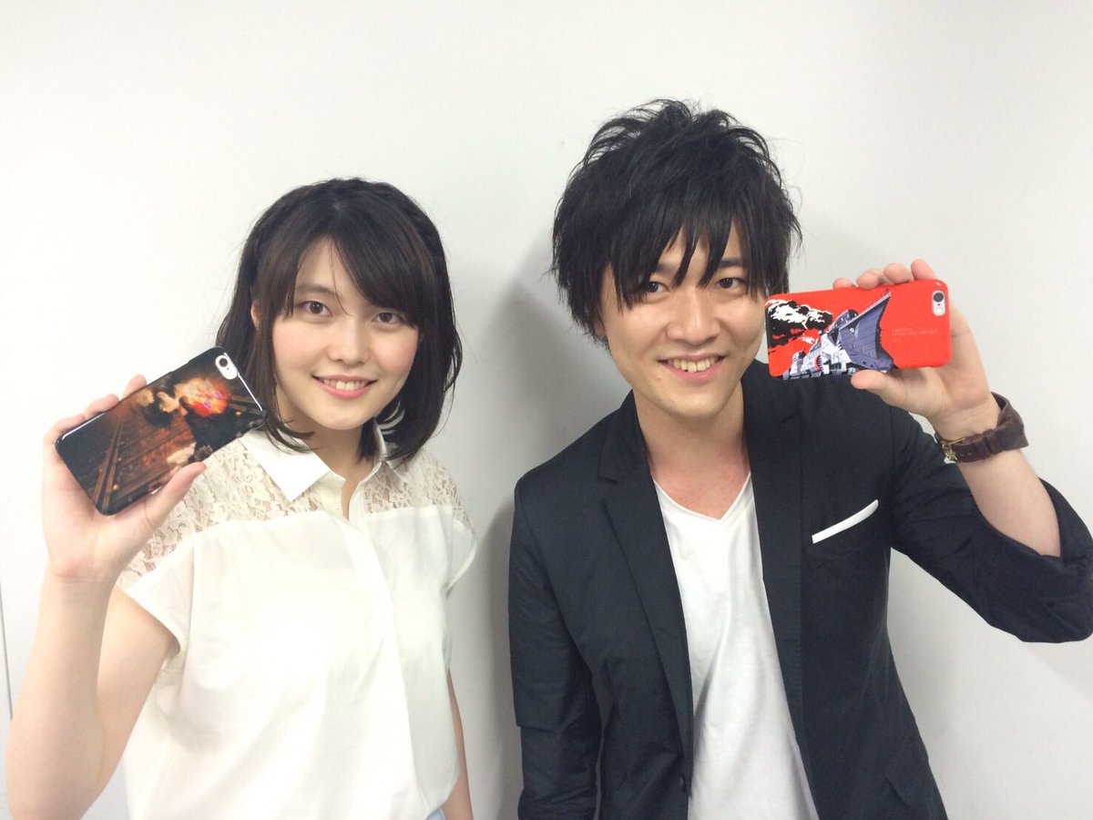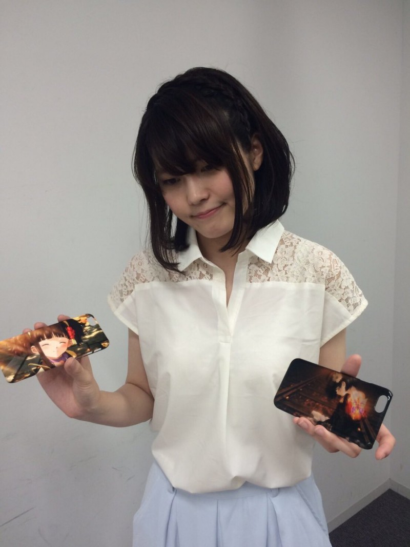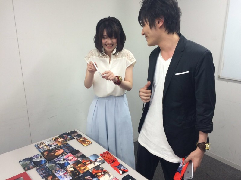 성우 하타나카 타스쿠 & 센본기 사야카의 사진, 아이폰 케이스를 들고