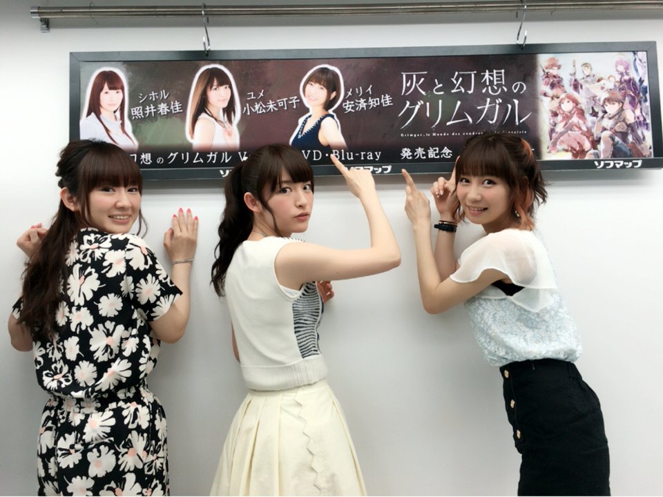성우 코마츠 미카코, 테루이 하루카, 안자이 치카씨의 사진입니다. '재와 환상