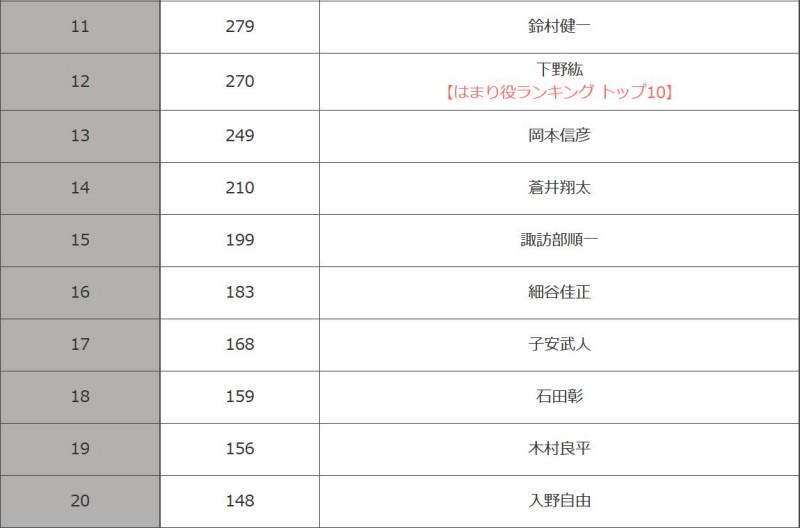 - 11위 : 스즈무라 켄이치