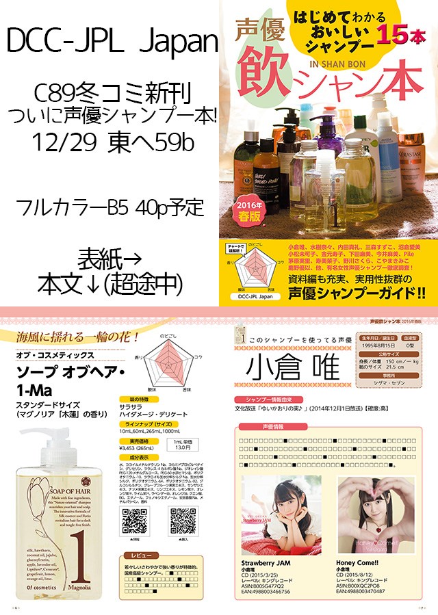 인기 성우분들이 애용하는 샴푸를 리뷰한 동인지가 코믹마켓89에서 판매 예정