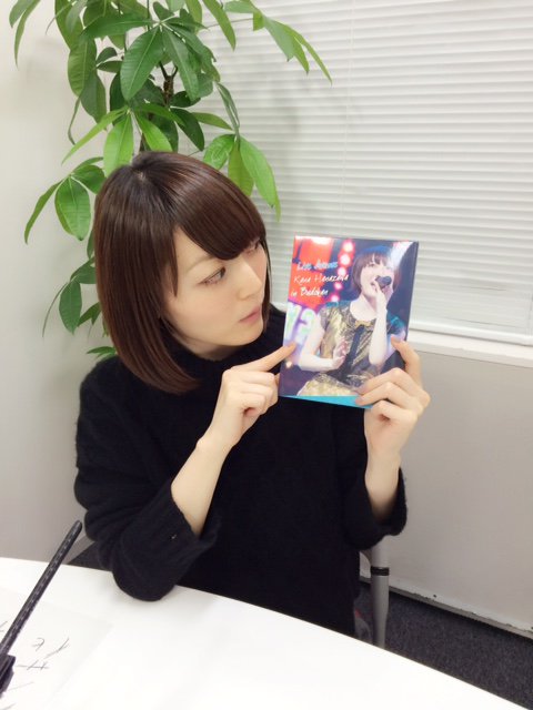성우 하나자와 카나씨가 무도관 공연 라이브 블루레이를 들고 있는 사진