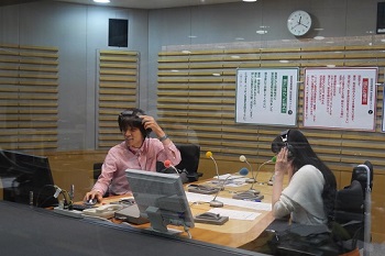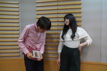 뮤코미+플러스, 성우 아마미야 소라씨와 요시다 히사노리 아나운서의 사진