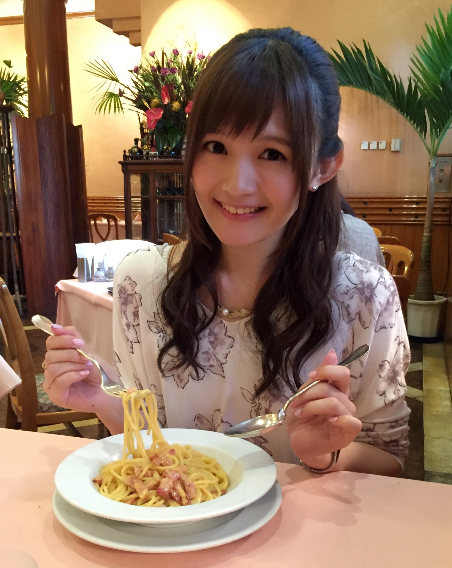 니시 아스카씨가 파스타를 먹고 있는 모습을 찍은 것 같은데요. 니시 아스카씨,