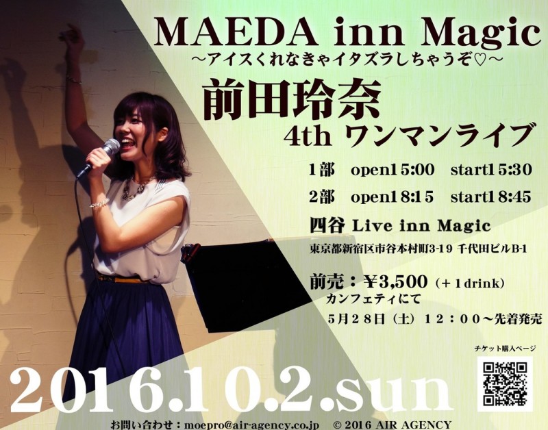 성우 마에다 레나가 4번째 원맨 라이브를 2016년 10월 2일에 도쿄 신주쿠