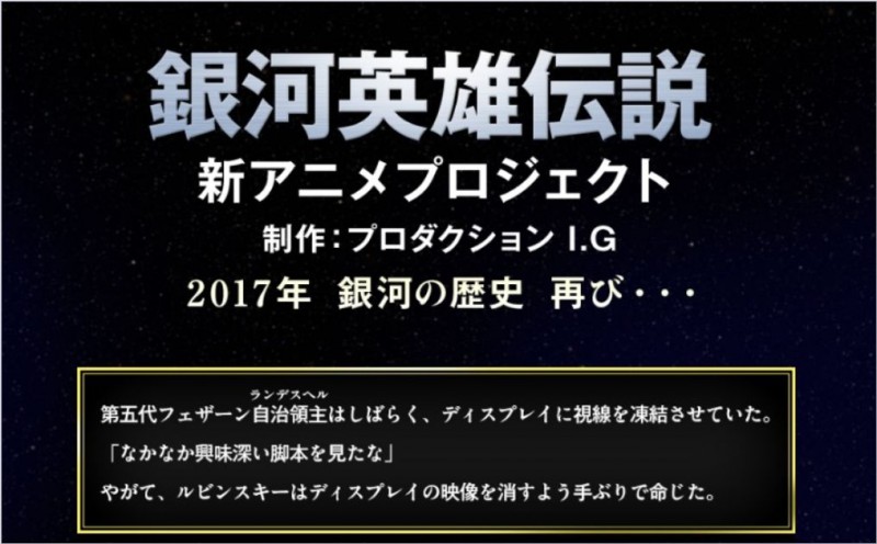 신작 애니메이션 프로젝트가 진행중인 '은하영웅전설'과 관련하여, 공식