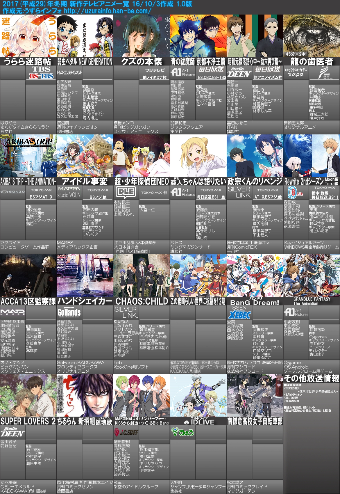 2017년 1월 (겨울) 시즌 신작 애니메이션 비공식 예정 목록
