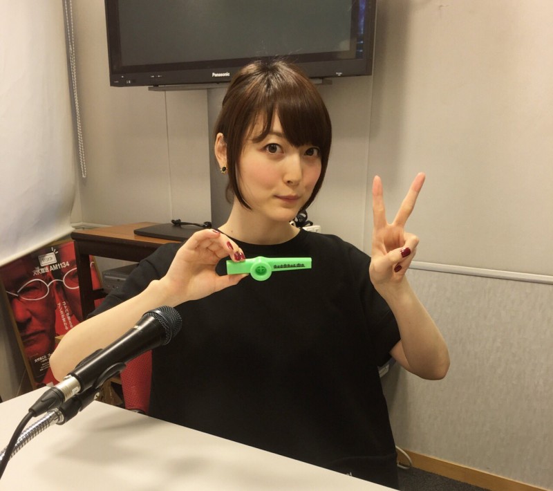 성우 하나자와 카나씨의 사진, 카주(커주)라는 악기를 손에 들고