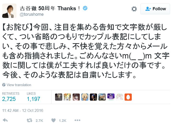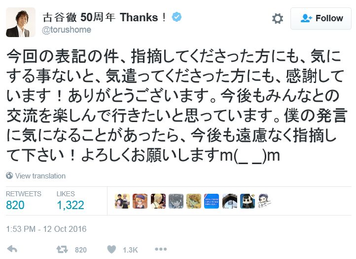 성우 후루야 토오루씨가 자신의 트위터에 사과문을 올렸다고 합니다. 갑자기