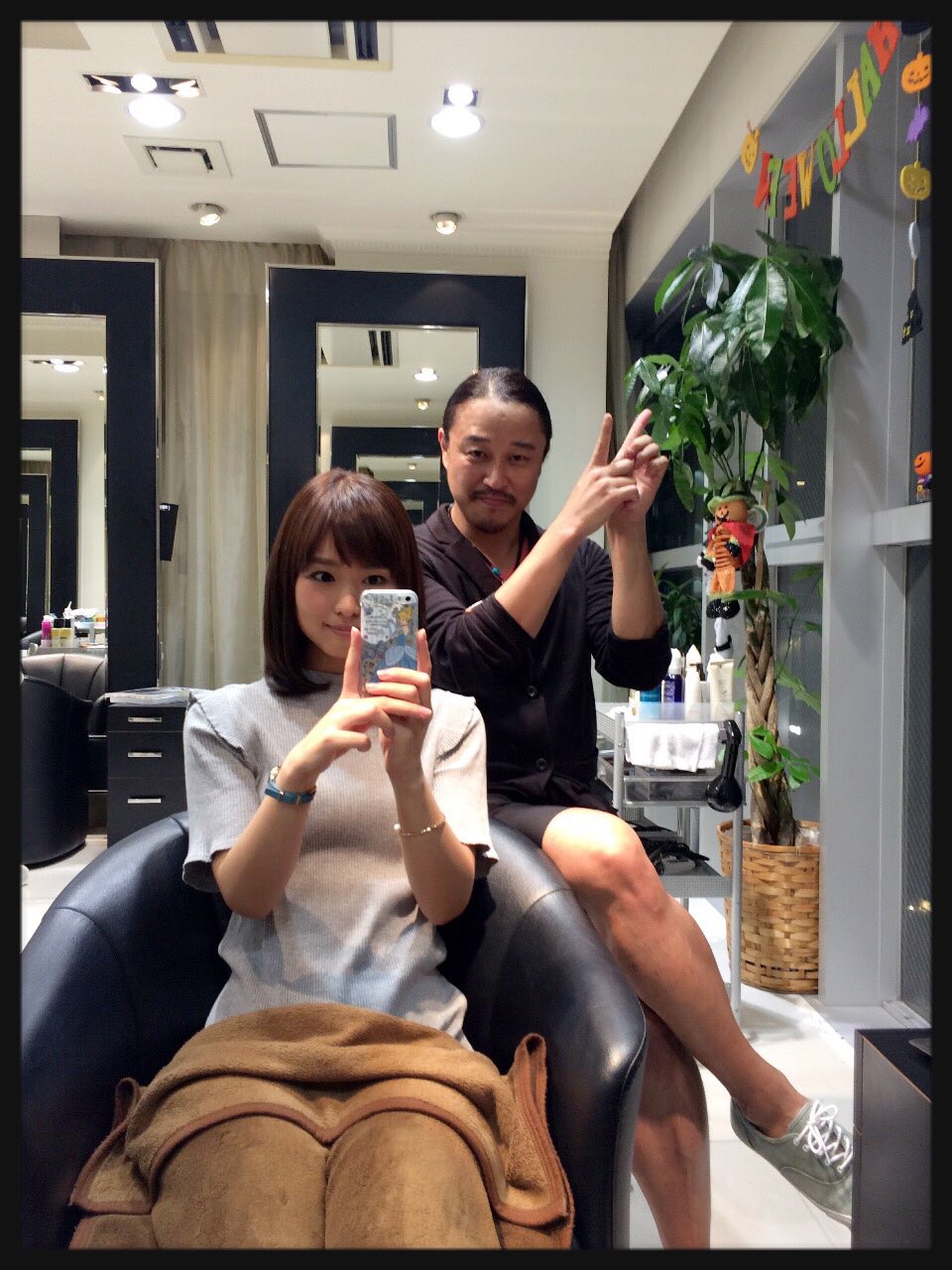 성우 후치가미 마이씨의 사진, 미용실에서 머리를 다듬은 모습
