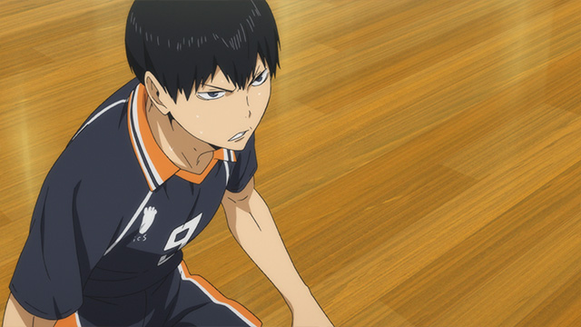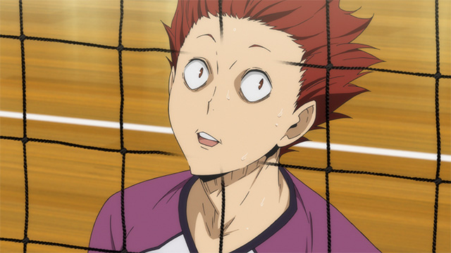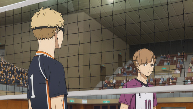 카라스노의 스파이크가 전부 떨어지는 와중, 츠키시마는 냉정하게 상대 코트를 바라보고 있다.