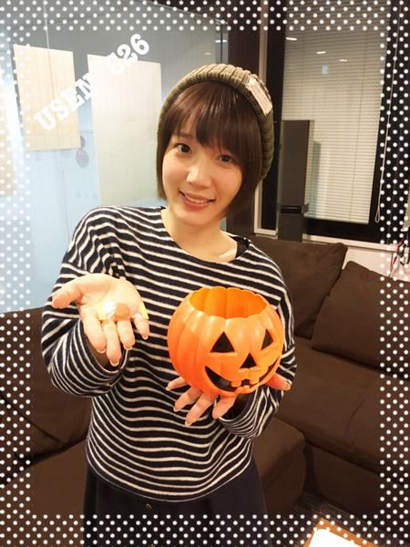 성우 우치다 마아야씨의 사진, 호박을 들고 있는 게 인상적이네요.