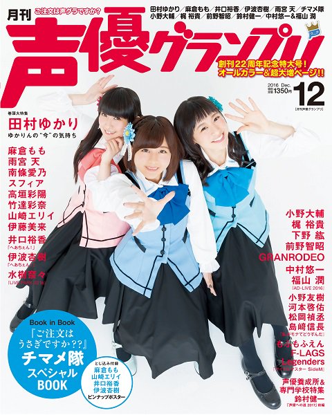 성우 그랑프리 2016년 12월호, 뒷표지는 치마메대 성우 3명이 장식