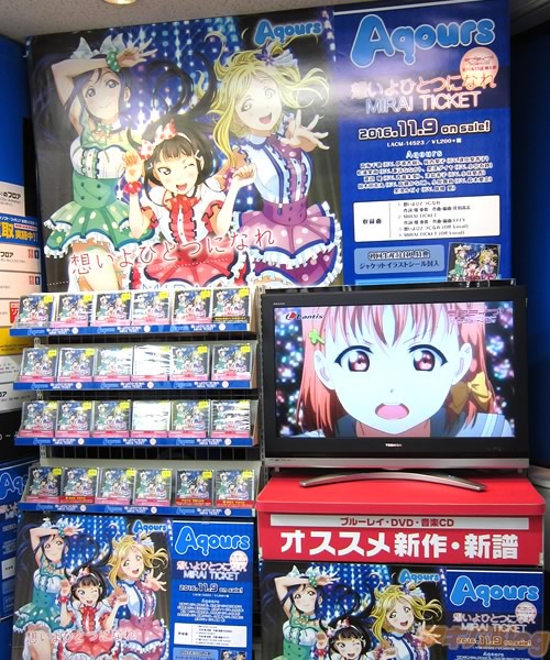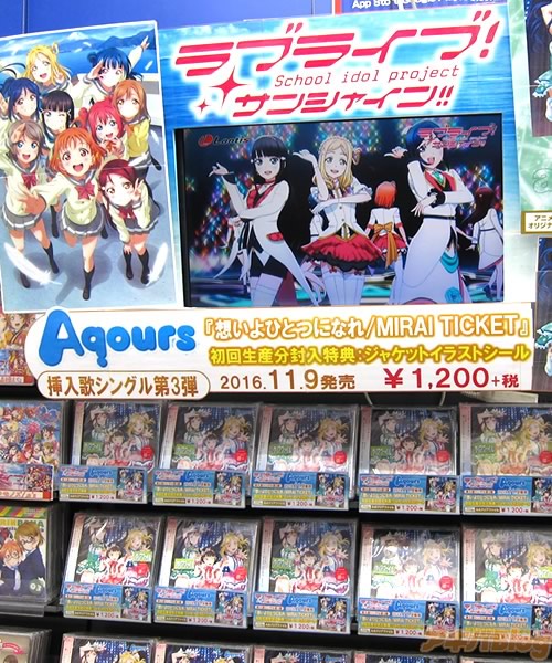 애니메이션 '러브라이브! 선샤인!!' 삽입곡 싱글 음반이 발매된 모습