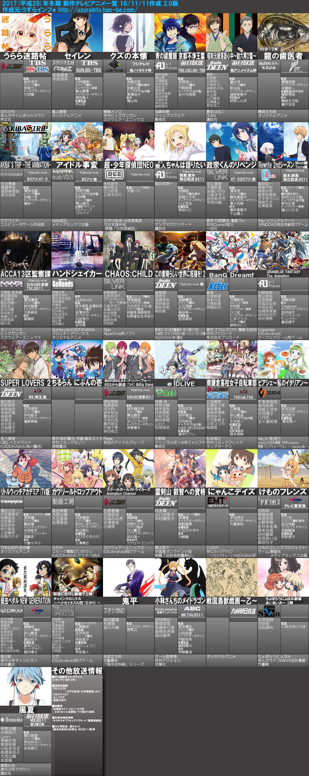 2017년 1월 (겨울) 신작 애니메이션 비공식 예정 목록 업데이트