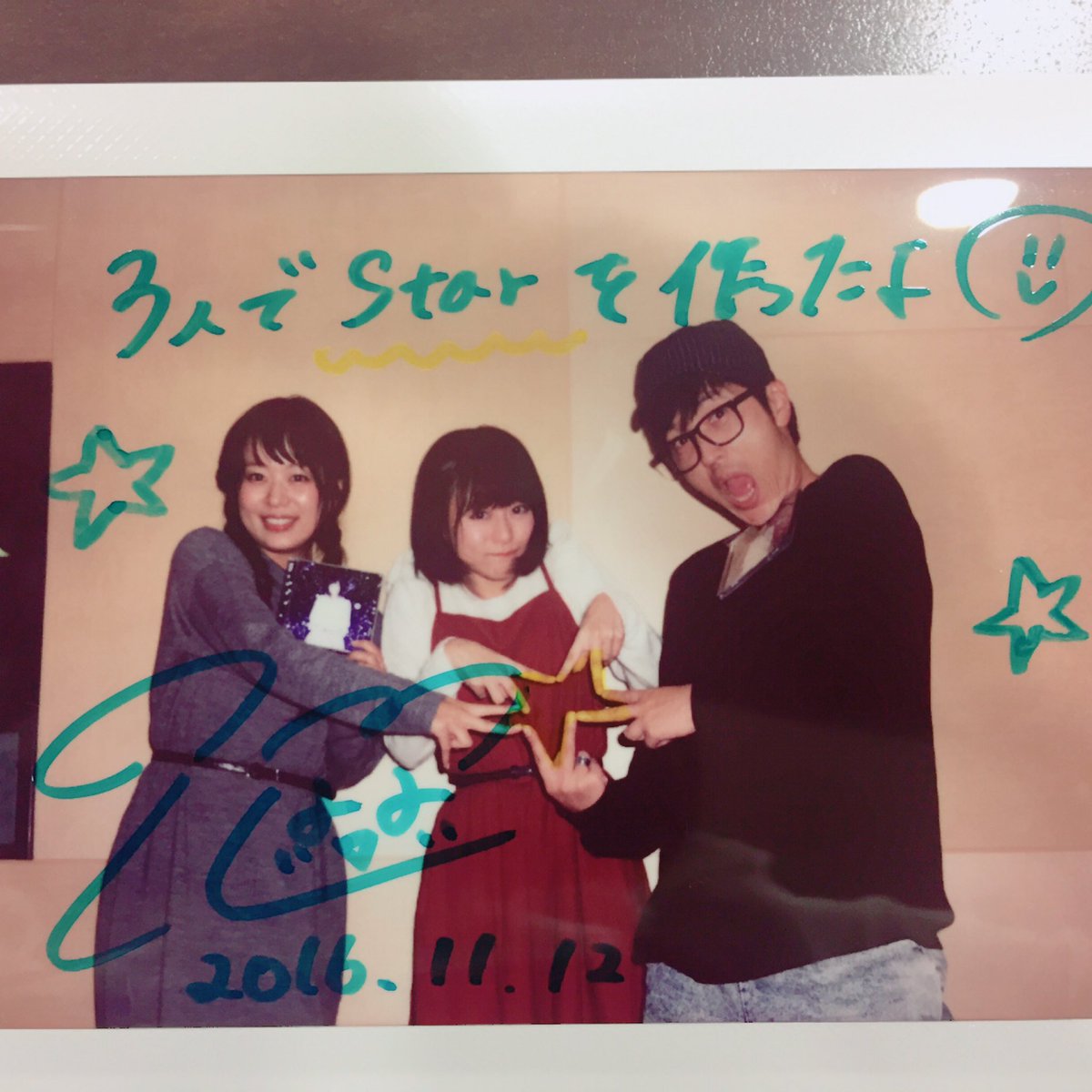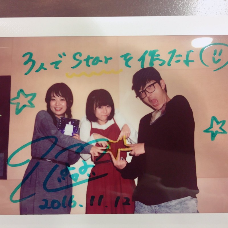 성우 미나세 이노리, 코무챠에 게스트 출연하여 찍은 기념 사진