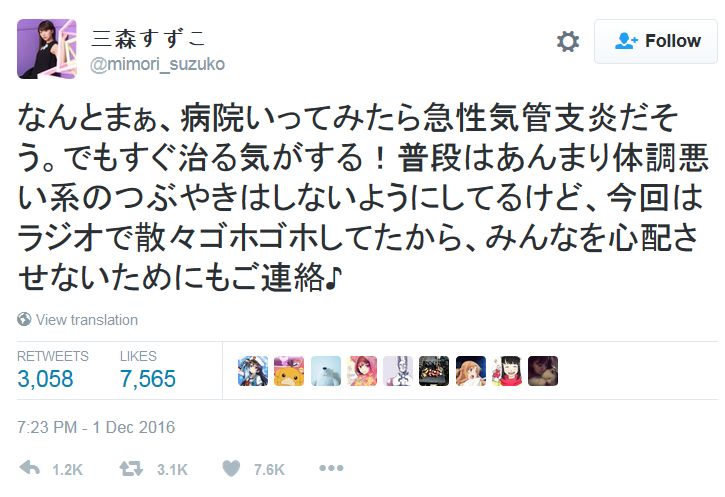(출처: https://twitter.com/mimori_suzuko/status/804269606663655424)