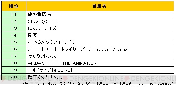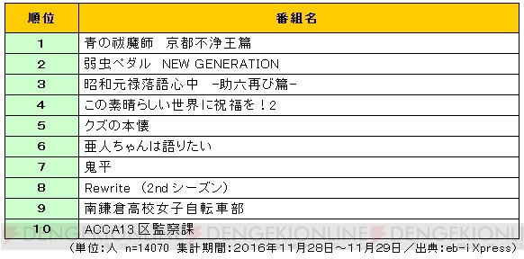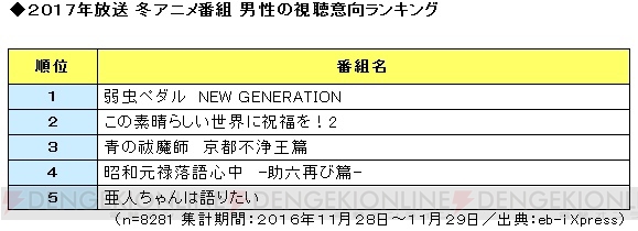 'eb-i Xpress'에서, 2017년 1월 신작 애니메이션의 시청 의향 실태 조사를 실시