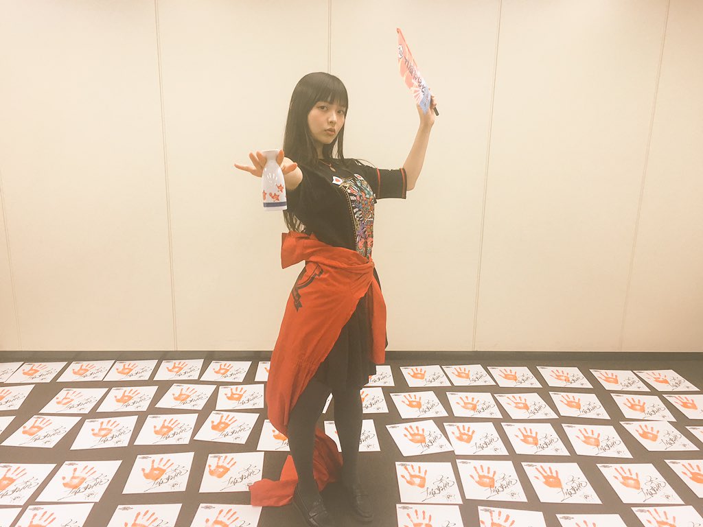 성우 우에사카 스미레가 손도장 2천장을 다 찍고 나서 포즈를 취한 모습이라고