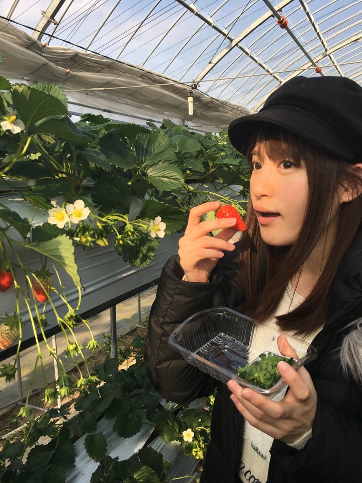 성우 코마츠 미카코씨의 사진입니다. 이치고가리(イチゴ狩り), 즉, 딸기 수확